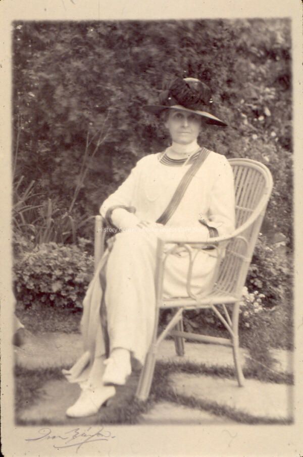 Unidentified woman on chair - is this a much later pictures, c. 1920s, of Grace Farwell Winston McGann at Fairlawn?