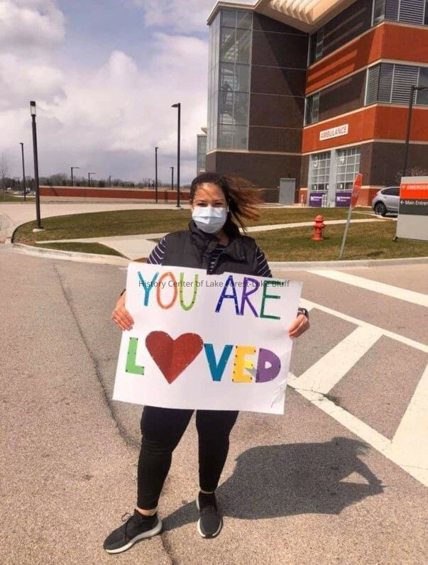 Carroll Working Stovold: Sign at the Lake County Sheriff's Office parade to honor medical workers at Northwestern Medicine Lake Forest Hospital.Photograph Details