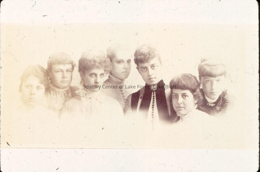 7 unidentified young women; Grace Farwell third from right