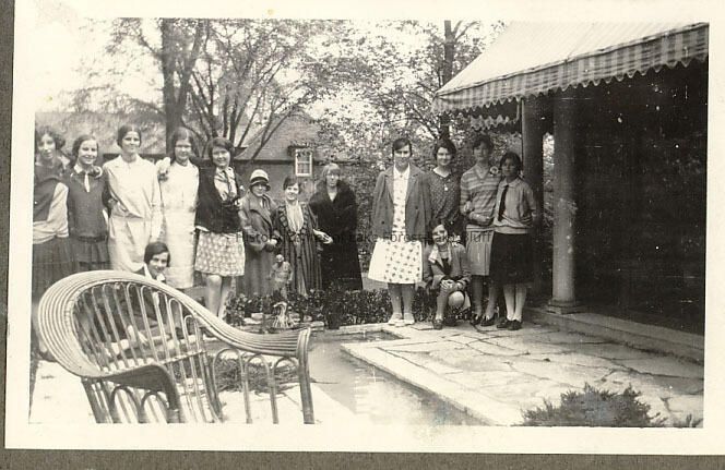 Lake Forest YWCA - Young Women's Christian Association girls and women around a statue and fountain or reflecting pool