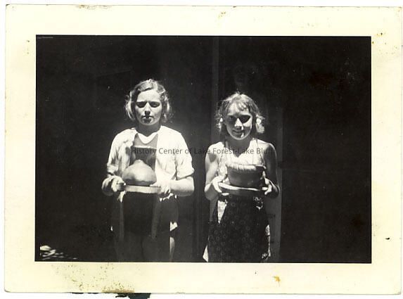 Lake Forest YWCA - Young Women's Christian Association Y.W.C.A. Summer Camp 1936-1937 two unidentified girls holding ceramic pieces Lake Forest Academy Campus (Sheridan and Maplewood Road)