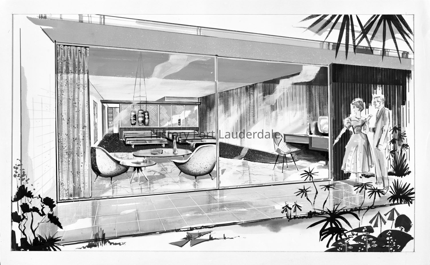 Proposed interior for a hotel designed by architect Charles McKirahan.Collection
