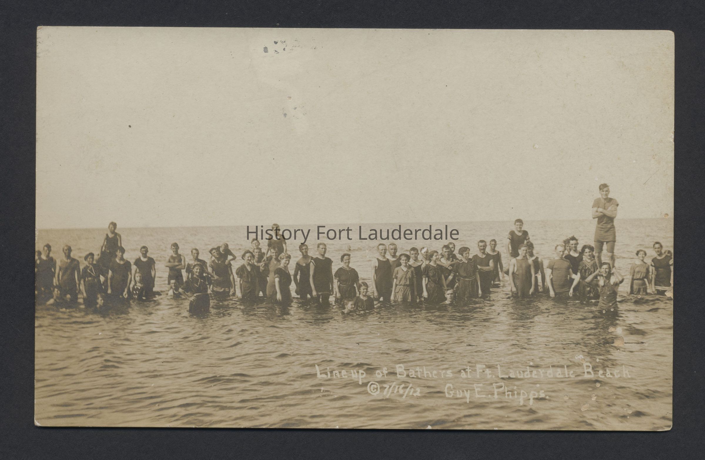 Printed in white on front: "Lineup of Bathers at Ft. Lauderdale Beach / (c)7/16/12 Guy E. Phipps"Collection