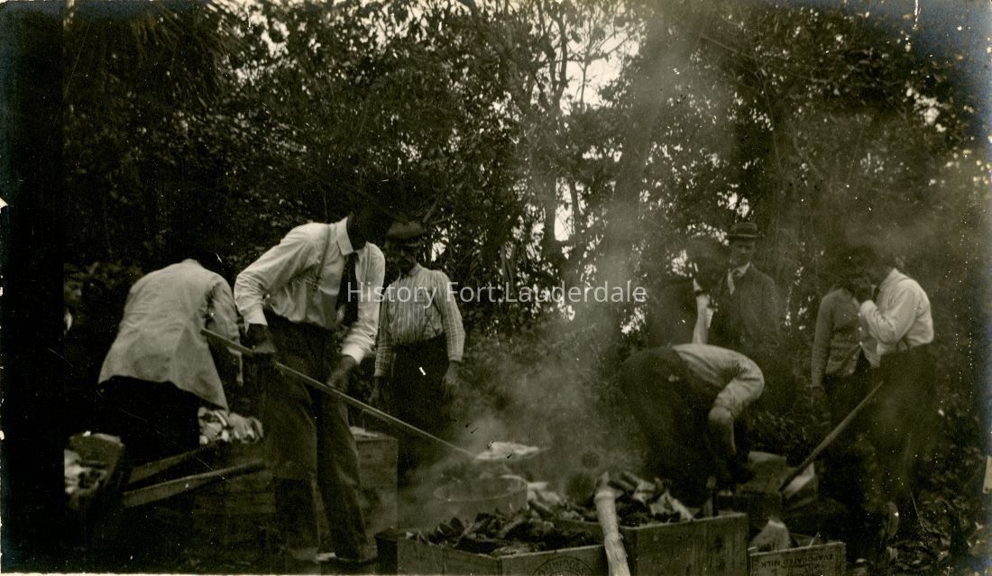 Group of white men barbecueing at the beach.Collection