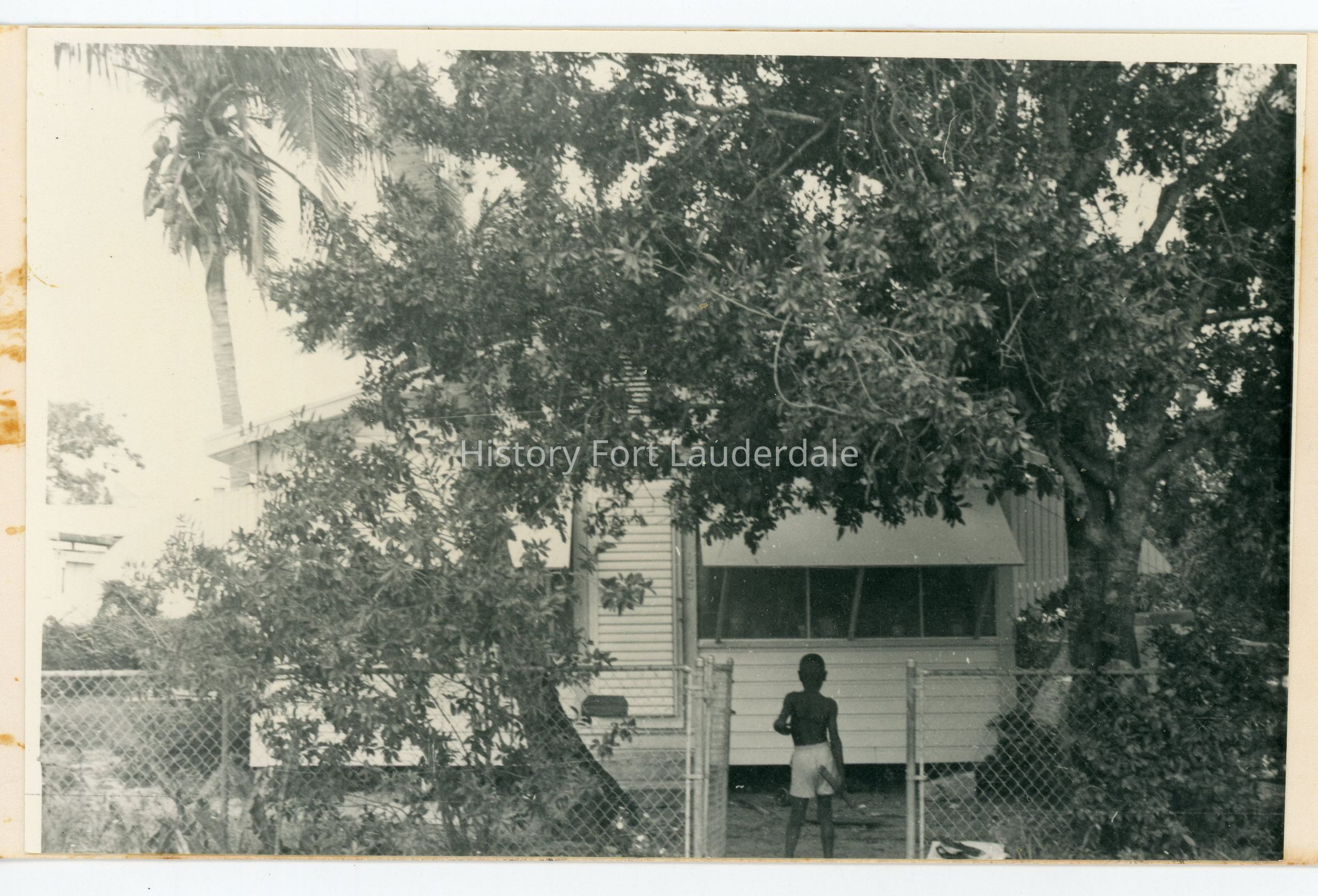 Lele S. Brown Residence - One story wood frame residence at 105 NW 4th Avenue. Chain-link fence and African-American boy in front.Collection