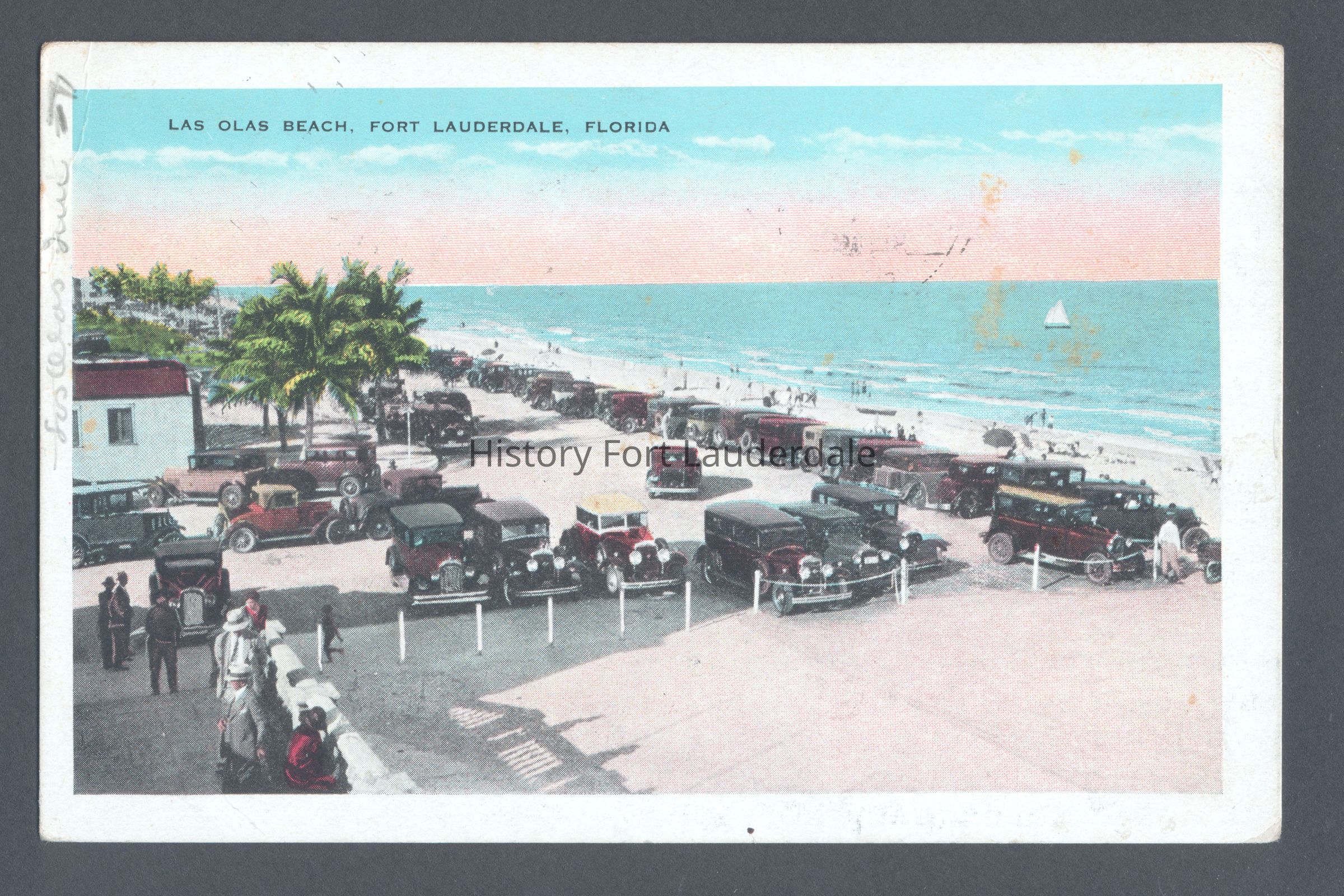 Printed on reverse: "Las Olas Beach is not excelled anywhere in the world. Gently sloping, free from undertow and easy accessibility from every section of the city are characteristics of Fort Lauderdale's municipal bathing beach."