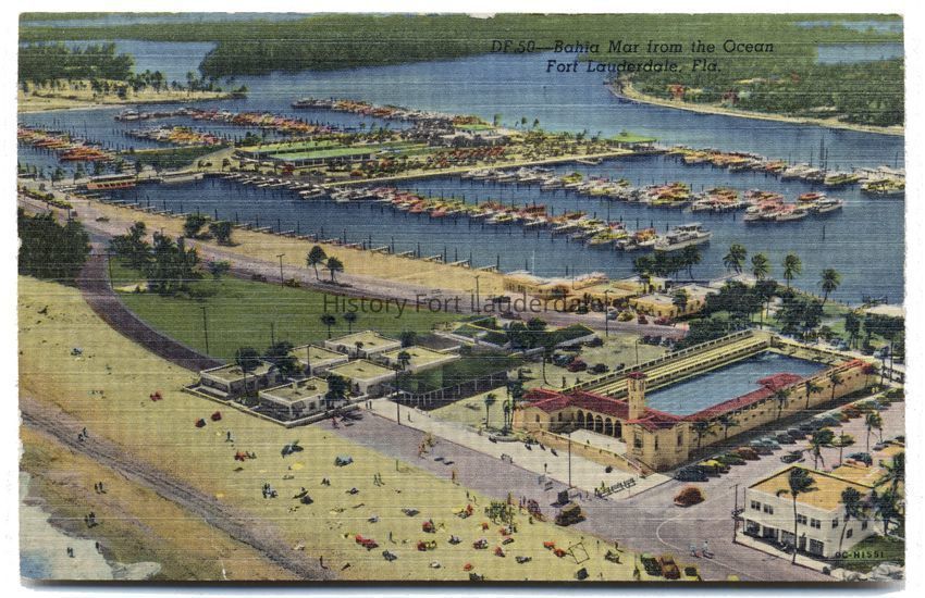 Aerial view of Bahia Mar, Casino Pool, and Fort Lauderdale Beach. Beach in foreground, Bahia Mar marina and yacht basin in background.Collection