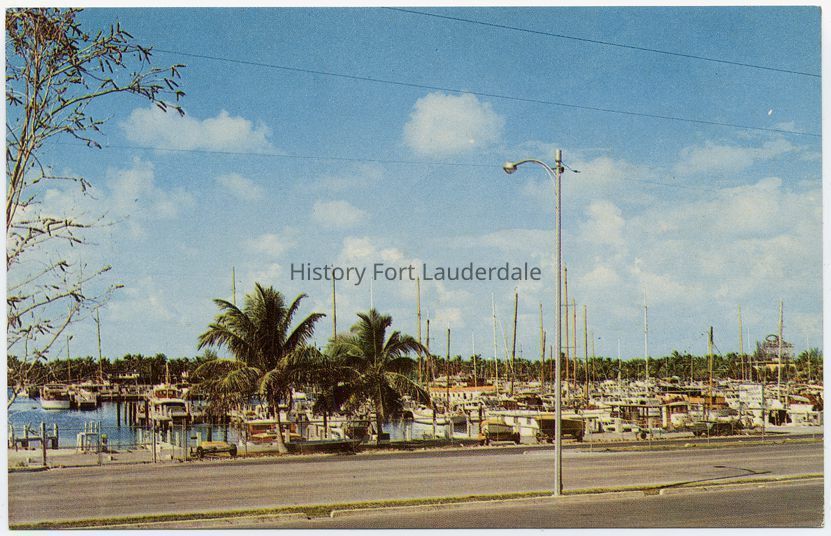 View of Bahia Mar Yacht Basin and A1A. Light pole in foreground.