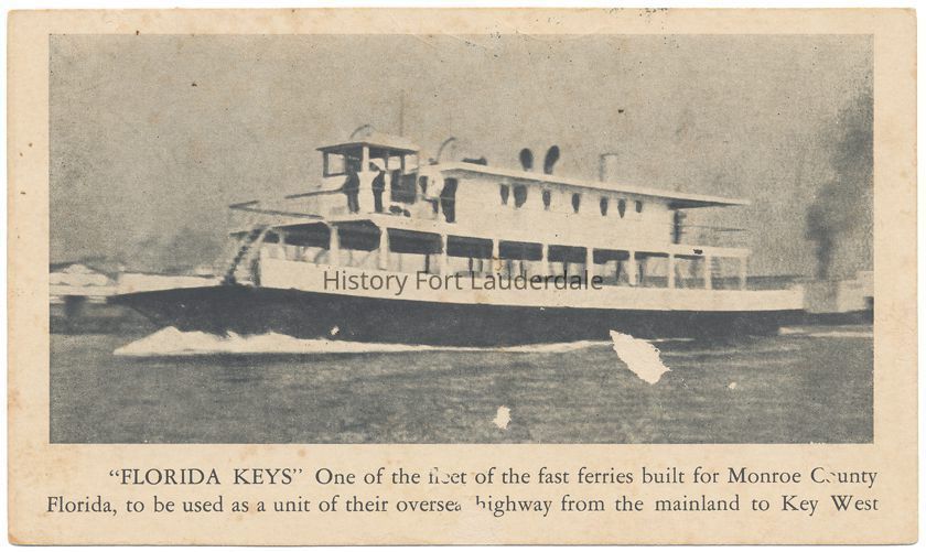 Printed on front: "FLORIDA KEYS" One of the fast ferries built for Monroe County Florida, to be used as a unit of their overseas highway from the mainland to Key West