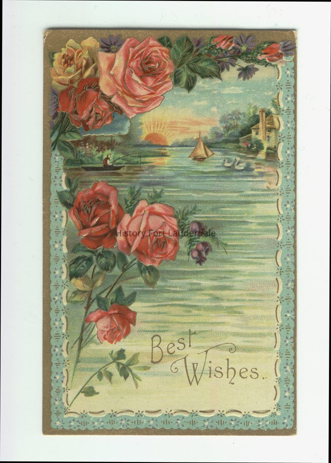 Colored image. Embossed. Divided-back postcard. Postmarked 7.20.1908, Tincher, WV. Mailed to Mrs. Frank Stranahan, Fort Lauderdale, FL. One-cent green Benjamin Franklin stamp.Collection