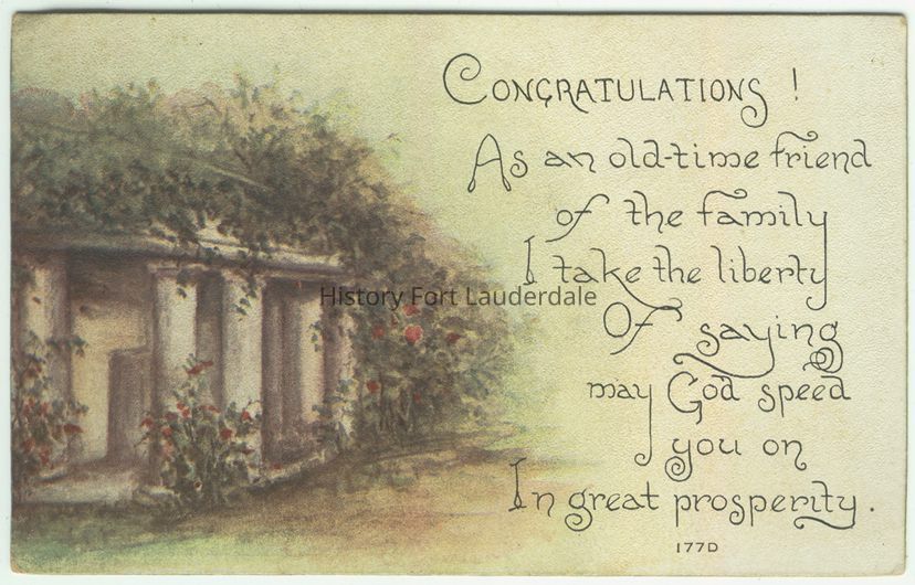 Ivy-covered building with white columns. Poem on right side of postcard.