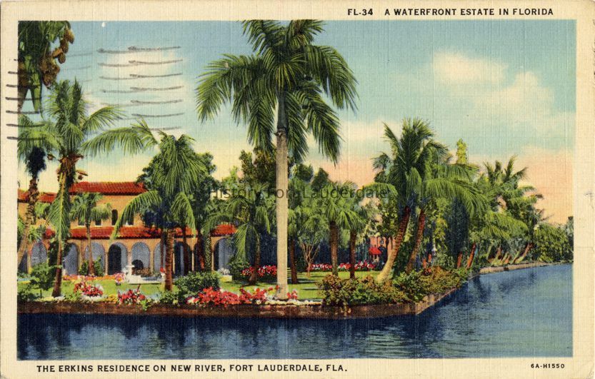 Notes: Home also known as "Casa Sonriendo" or "House of Smiles." Located at 401 Tarpon Terrace, on corner of New River and Himmarshee Canal. Built by Mrs. Ida A. Erkins of Cincinnati, OH, in 1925. Occupied by Erkins family, 1926-1950. Sold Winter 1950.Created By