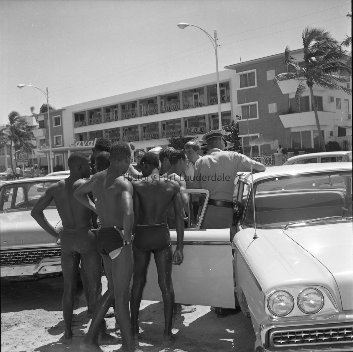Police investigate and question participants in the 1961 Wade-In at Fort Lauderdale Beach.