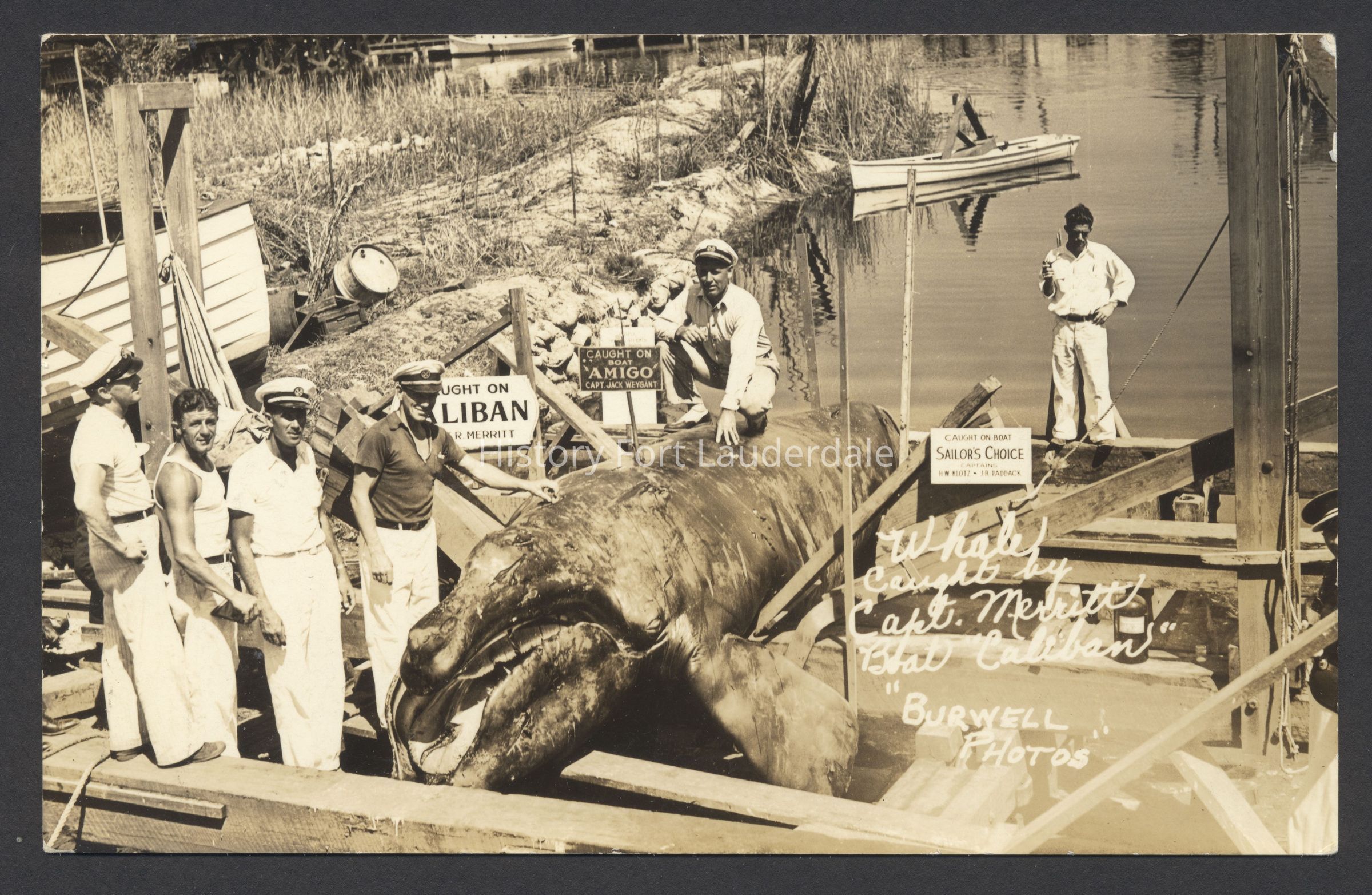 "Whale caught by Capt. Merritt. Boat 'Caliban' " written on picture.