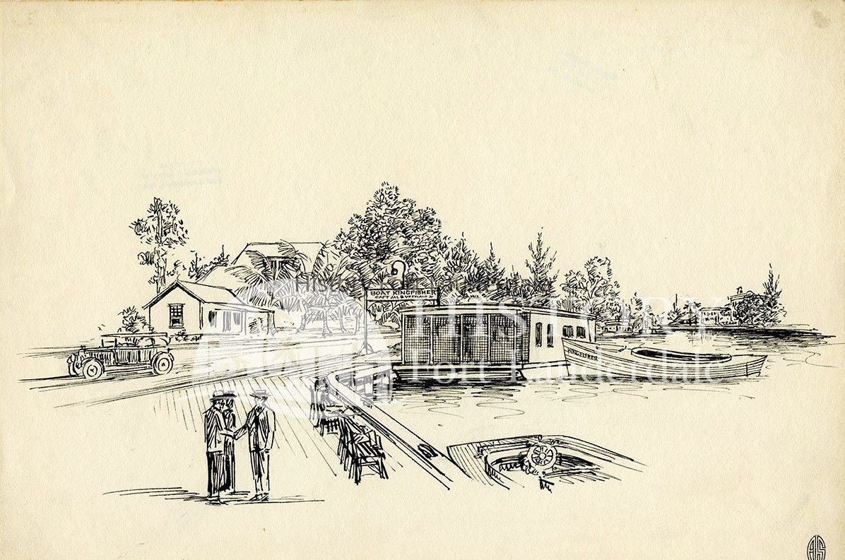Looking South Andrews Bridge Boat Kingfisher on New River 1919.jpgArtwork Details