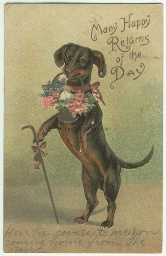 Colored image. Embossed. Divided-back postcard. Postmarked 10.3.1908, Warren, OH. Mailed to Mrs. Frank Stranahan, Fort Lauderdale, FL. One-cent green Benjamin Franklin stamp.Collection