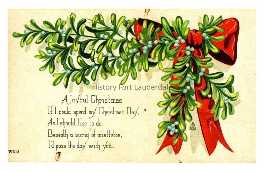 Mistletoe branches tied with red ribbon. Poem titled "A Joyful Christmas."