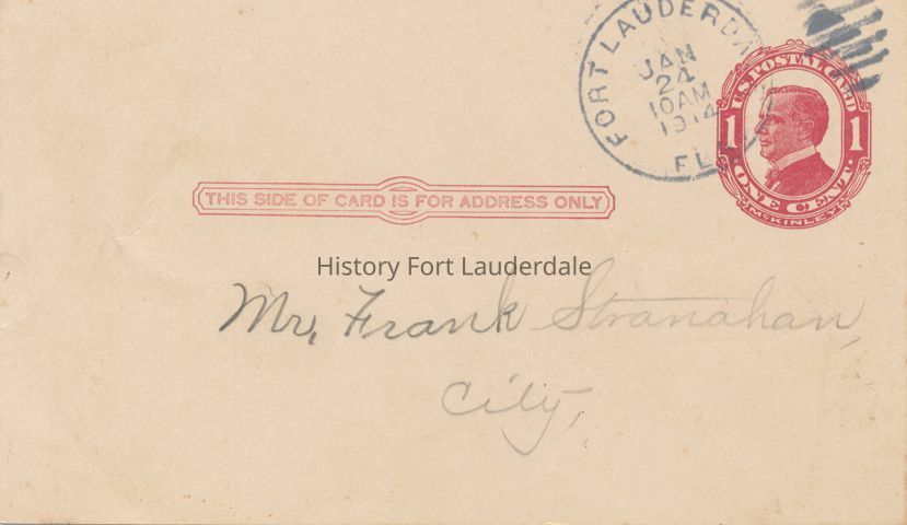 Mailed to Frank Stranahan by S. P. Snyder. Postmarked 1.24.1914.