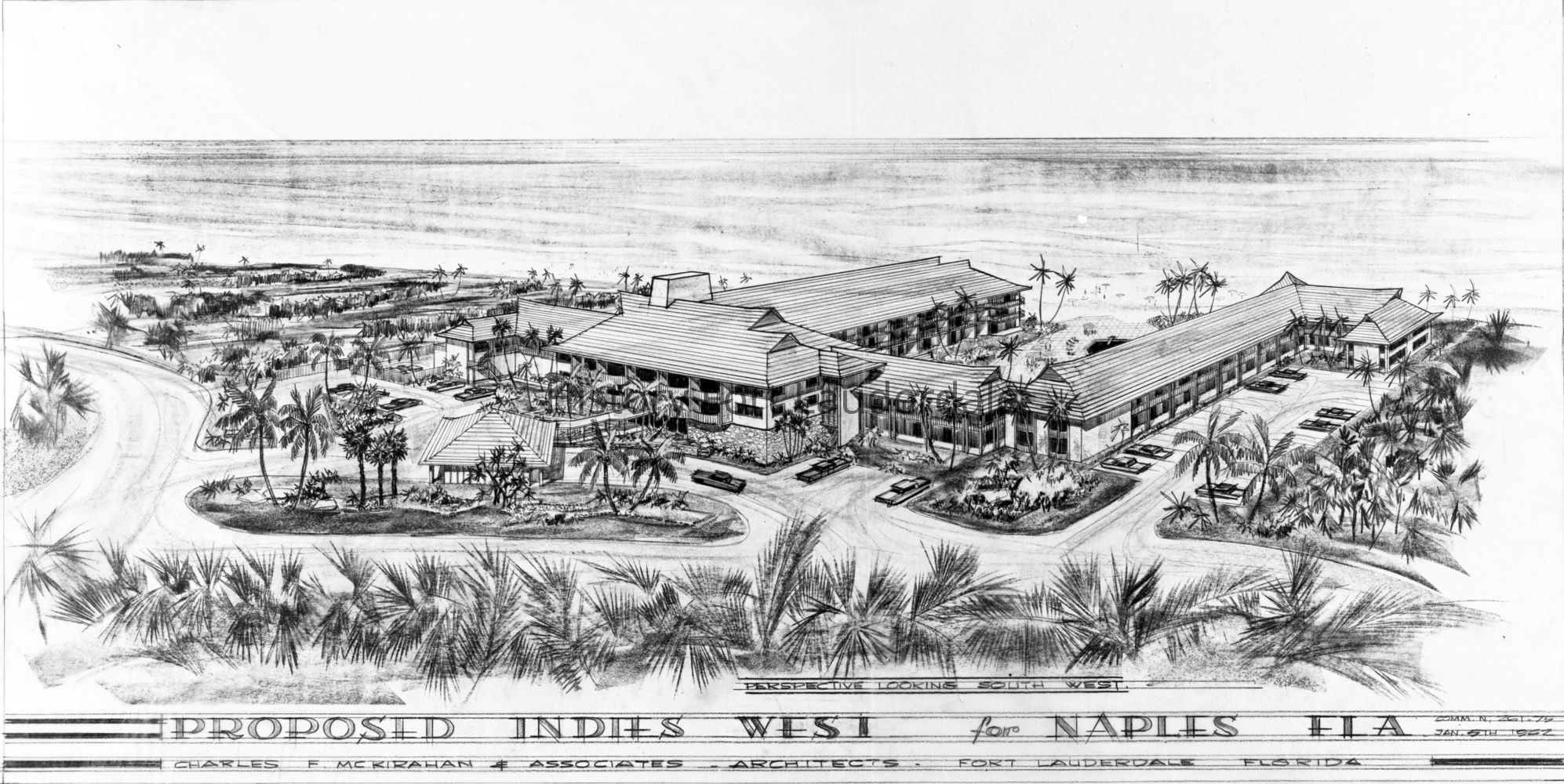 Proposed Indies West for Naples, FL designed by architect Charles McKirahan. Perspective looking south west.Collection