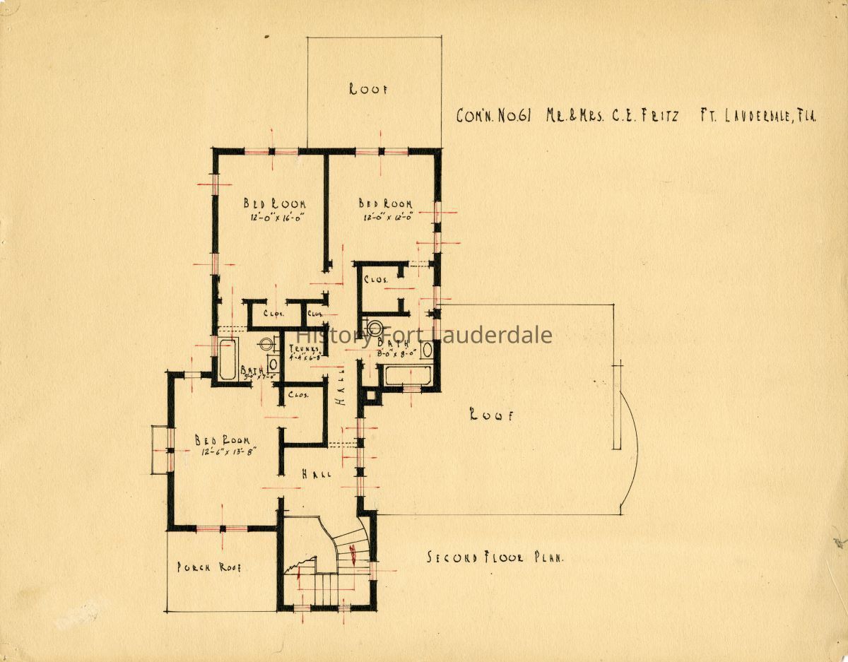 Fritz Residence, Mr. Fritz, Mrs. Fritz, C.E. Fritz, Mr. C.E. Fritz, second floor, Com'n No 61, Francis Abreu, francis, abreu, fort lauderdale
