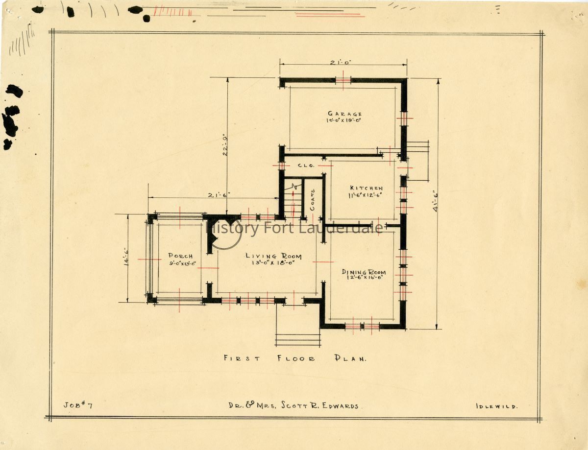 Finding Aids: Scott Edwards, Scott R Edwards, Dr. Edwards, Dr. Scott R Edwards, Mrs. Edwards, first floor, idlewild, job 7, job #7, Francis Abreu, francis, abreu, Edwards Residence