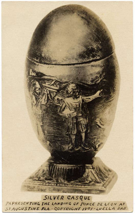 Silver Casque Representing the Landing of Ponce de Leon at St. Augustine, Fla. - Copyright 1909, Luella DayEntry/Object ID