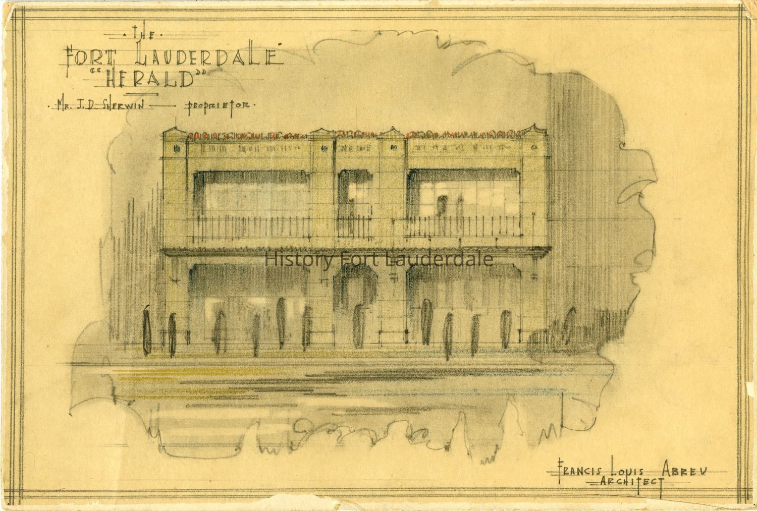 - "Ft Lauderdale Herald (newspaper office), 1st & 2nd Floors by Francis Abreu - No date Herald Front of Building rendering"