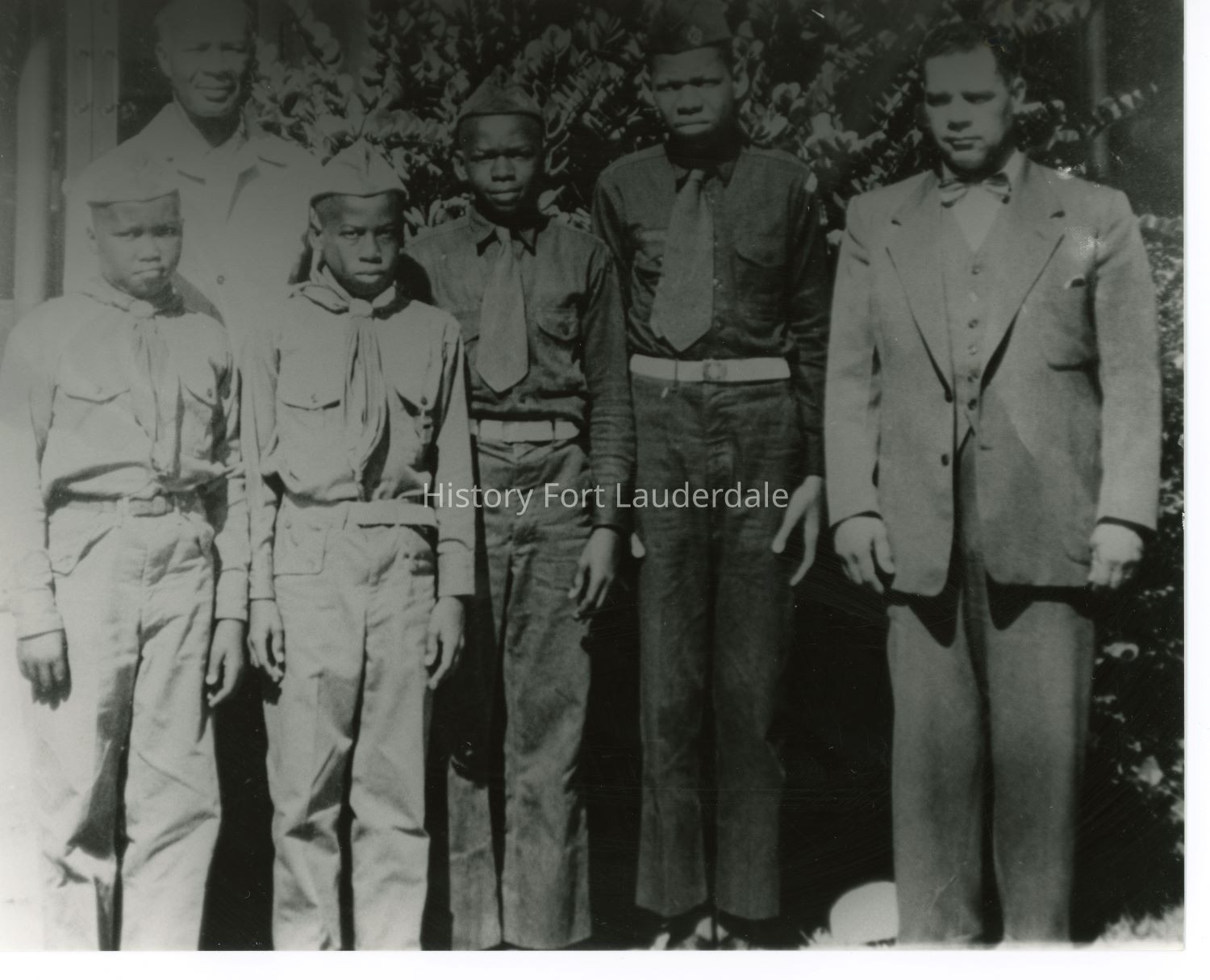 Rev. Banks and Dr. Von D. Mizell with four unidentified Boy Scouts.Collection