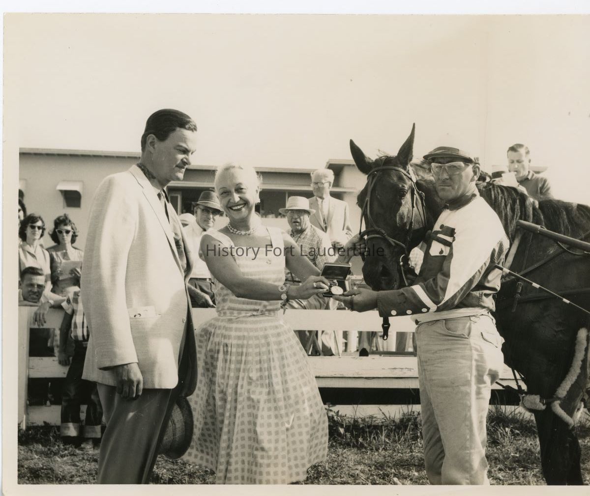 Fred Van Lennep and woman presenting award to jockey at Pompano ParkCollection