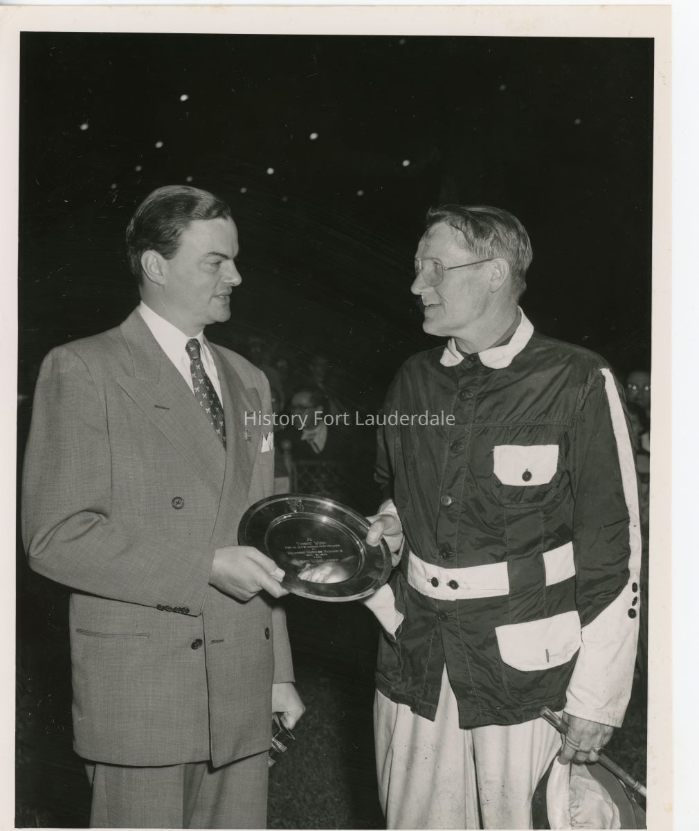 Fred Van Lennep and presenting Driver of the Year award to to jockey Tommy Winn at Wolverine Harness RacewayCollection