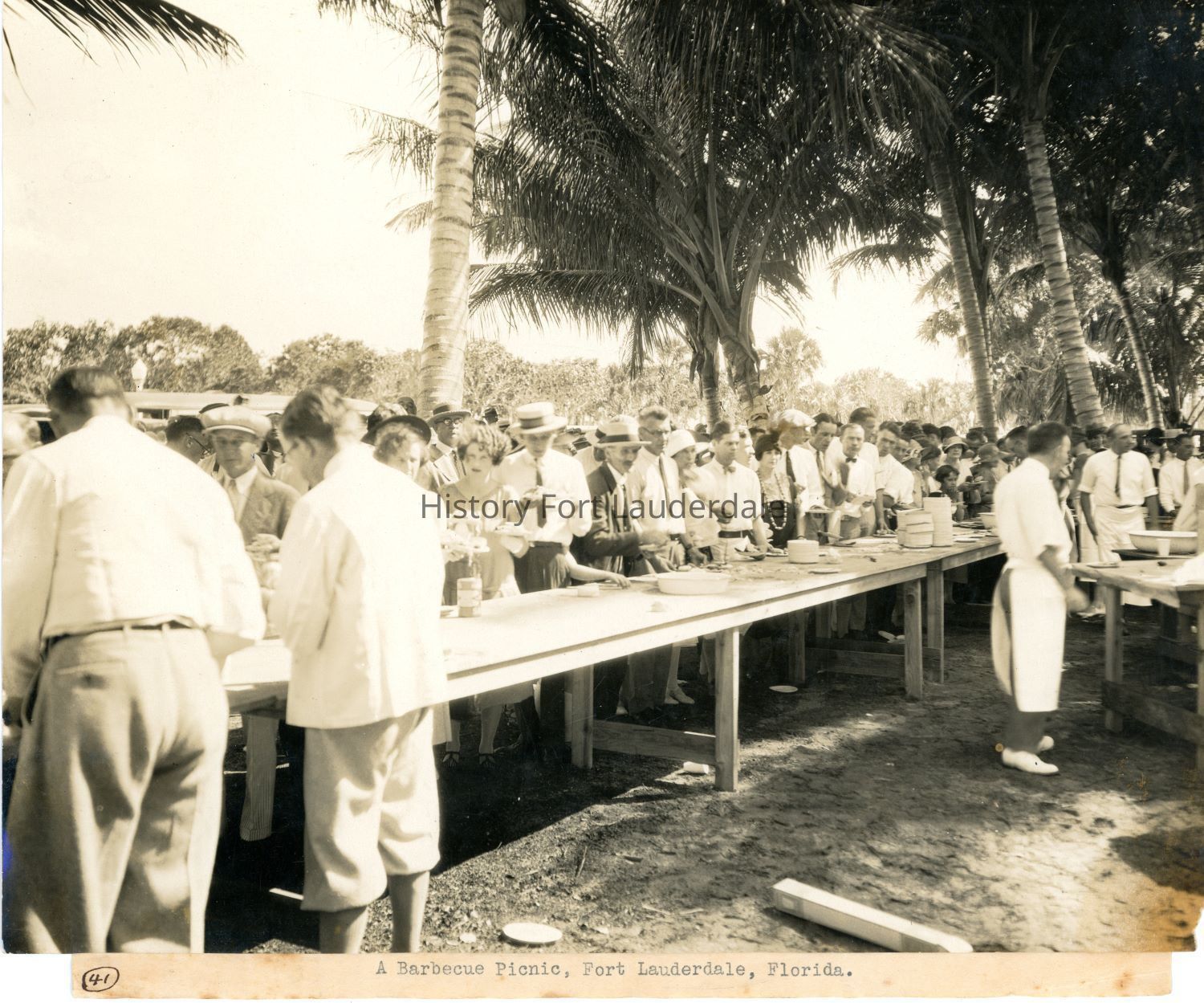 A barbecue picnic on Fort Lauderdale Beach when Morang was selling island lots. 1925Collection