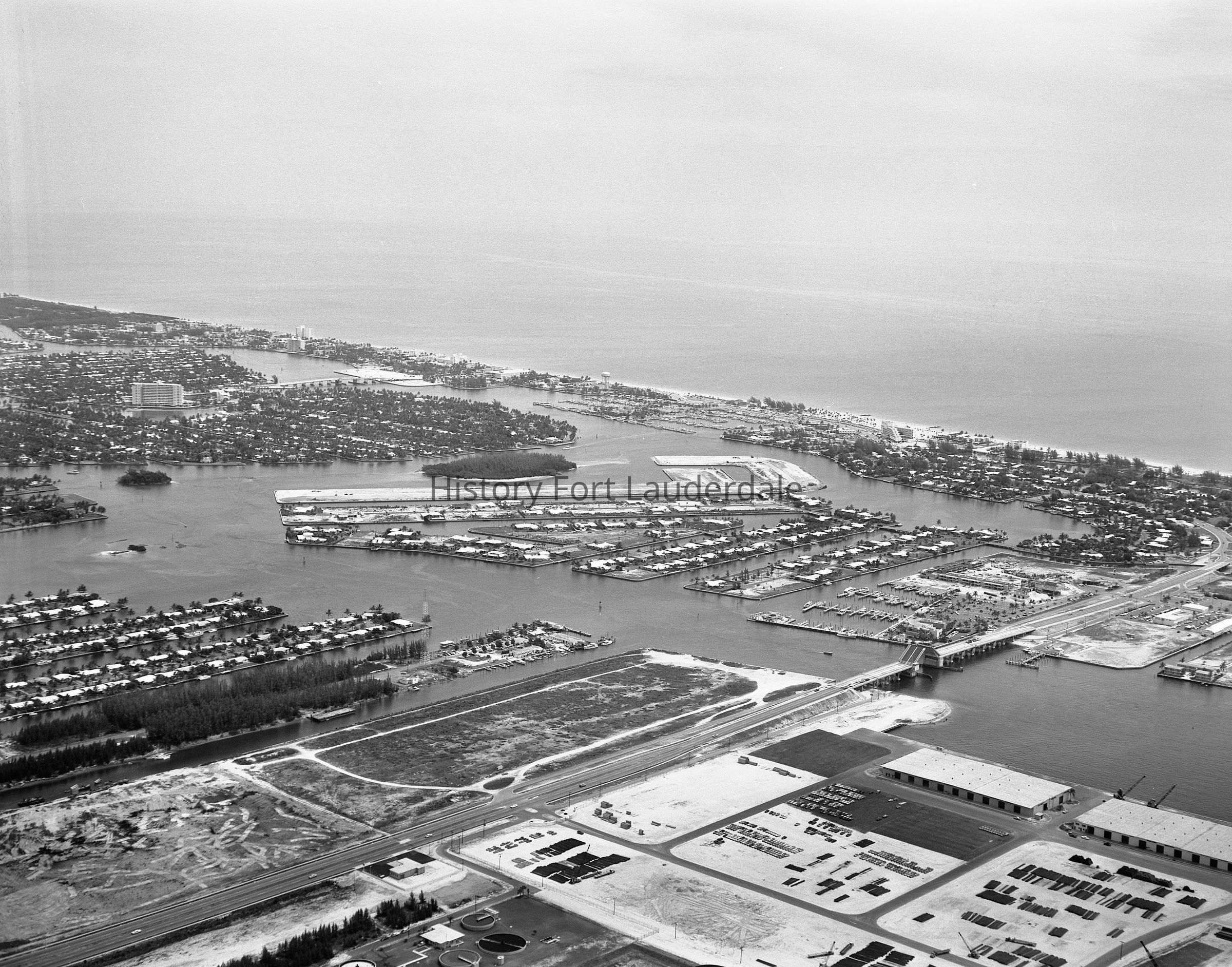.this image looks NE from Port Everglades; Pier 66, under construction, is center left and Bahia Mar is centered in the background. Other areas shown in the photo are Harbor Beach (center), Idlewyld and Las Olas Isles (upper left) and the Harbor Isles (lower left center).Collection