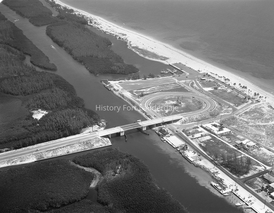 This image shows the Dania Beach Blvd. bridge across the Intracoastal, the cloverleaf, Whiskey Creek Marina and what is now Dr. Von Mizell-Eula Johnson State Park. The Recreation Area (upper center) was from the 1940s until 1960 the official segregated beach for the use of the African American citizens of Broward County. It was formally named, John U. Lloyd State Park.Collection