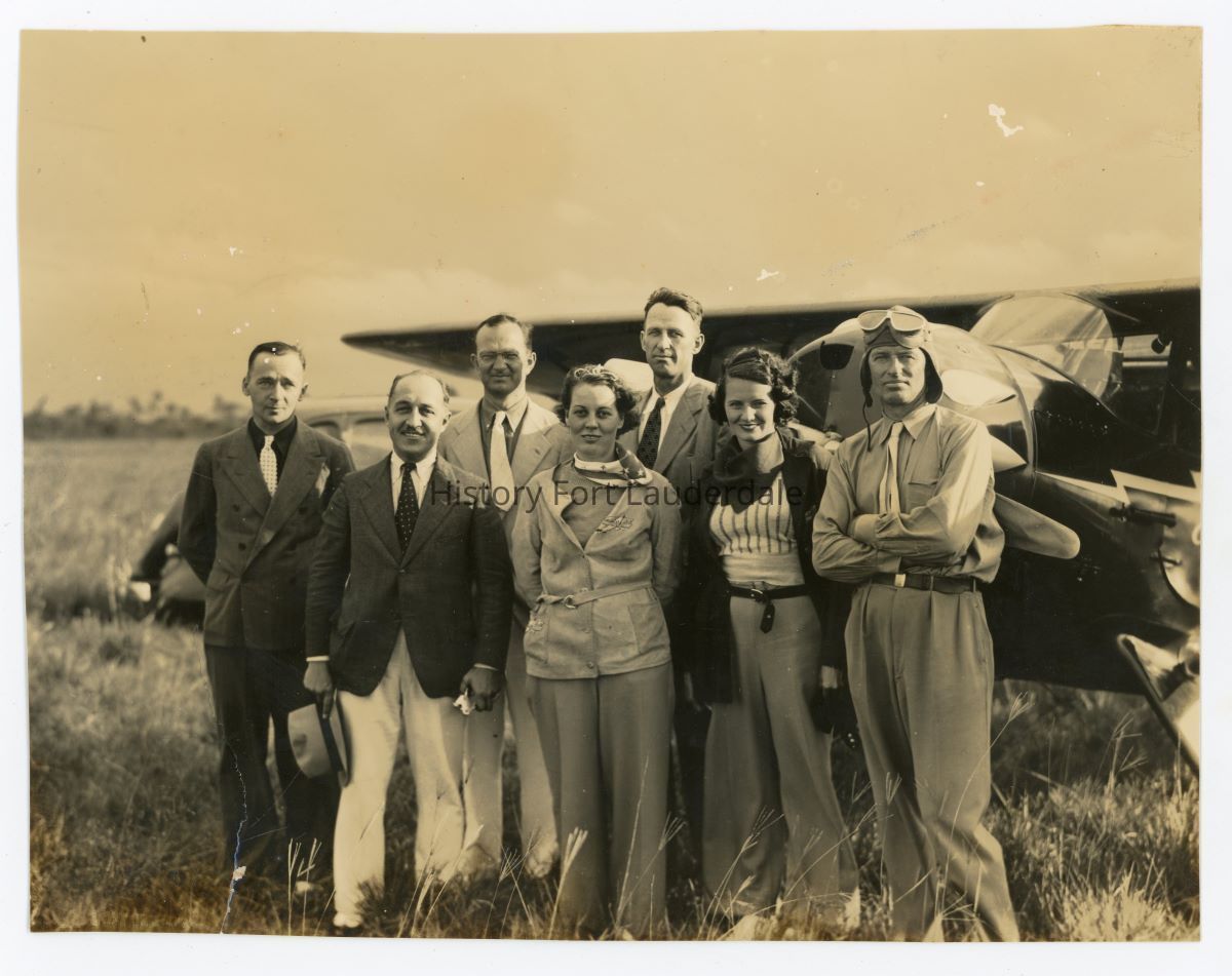 People in front of an airplane . August Jr. is standing third from the left.Collection