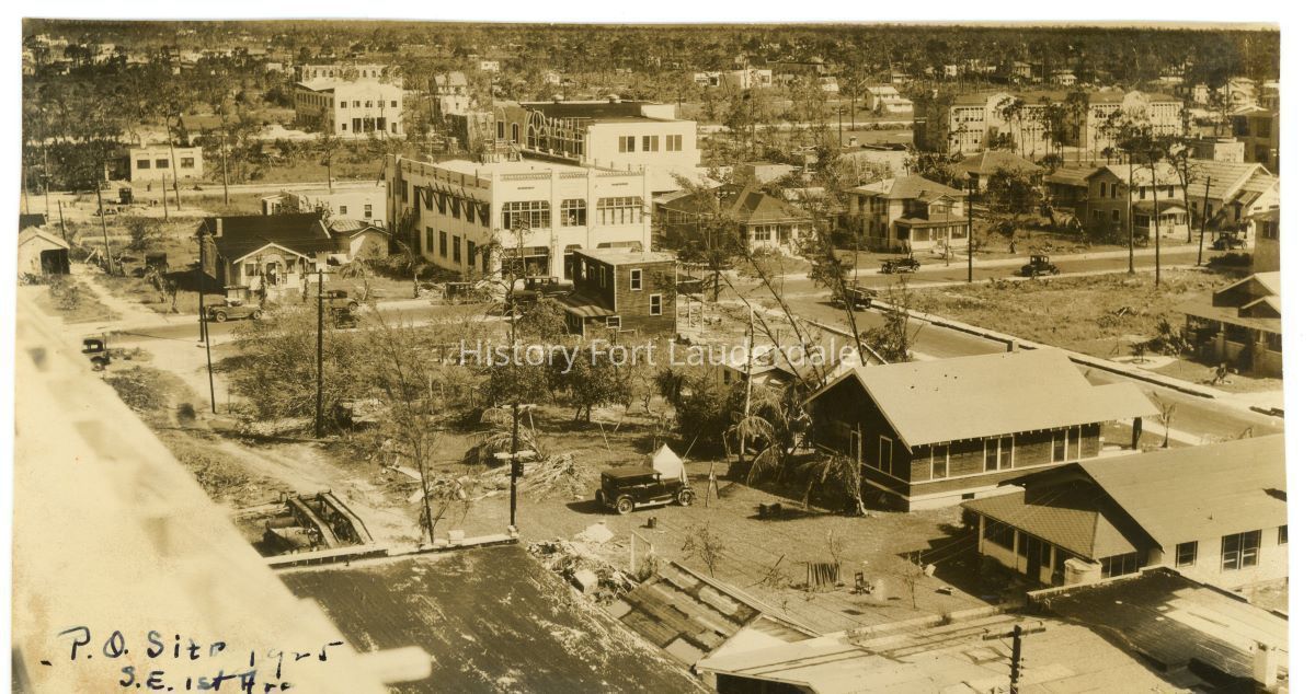 A north view from the Osceola Motors Company garage on SE 1st Avenue after the 1926 hurricane. The Daily News, where August Jr. worked as a journalist, is the two-story white building on SE 2nd Street.Collection