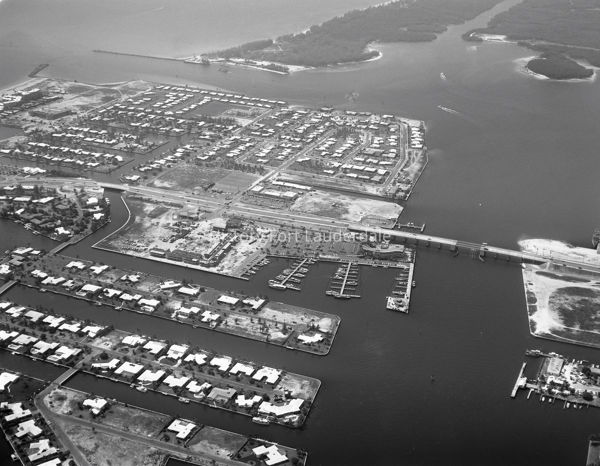 This is a photograph of the Harbor Beach Subdivision looking SSE towrds the Port Everglades Inlet. Pier 66 is in the center of the photograph. The Stranahan River, crossed by the Commodore Brook Causeway and Bridge (SE 17th Street) is in the lower right quadrant and the Port Everglades turning basin is in the upper right quadrant. The port inlet is shown at the upper center left of the image.Collection