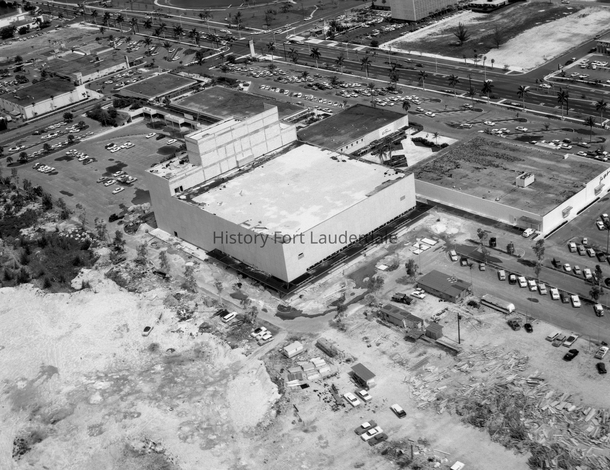 This close-up view of the Jordan Marsh store show part of the parking garage for the shopping center under construction.Collection