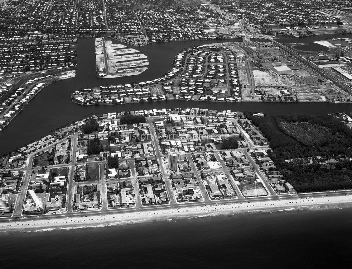 Ocean N 1/2 Birch Estates. Looking West. A1A is in the foreground of this image; the Sunrise neighborhood and Sunrise Key are centered in the background. The Intracoastal Waterway is centered, left to right; the Middle River, separating Sunrise and Sunrise Key is in the background.Collection