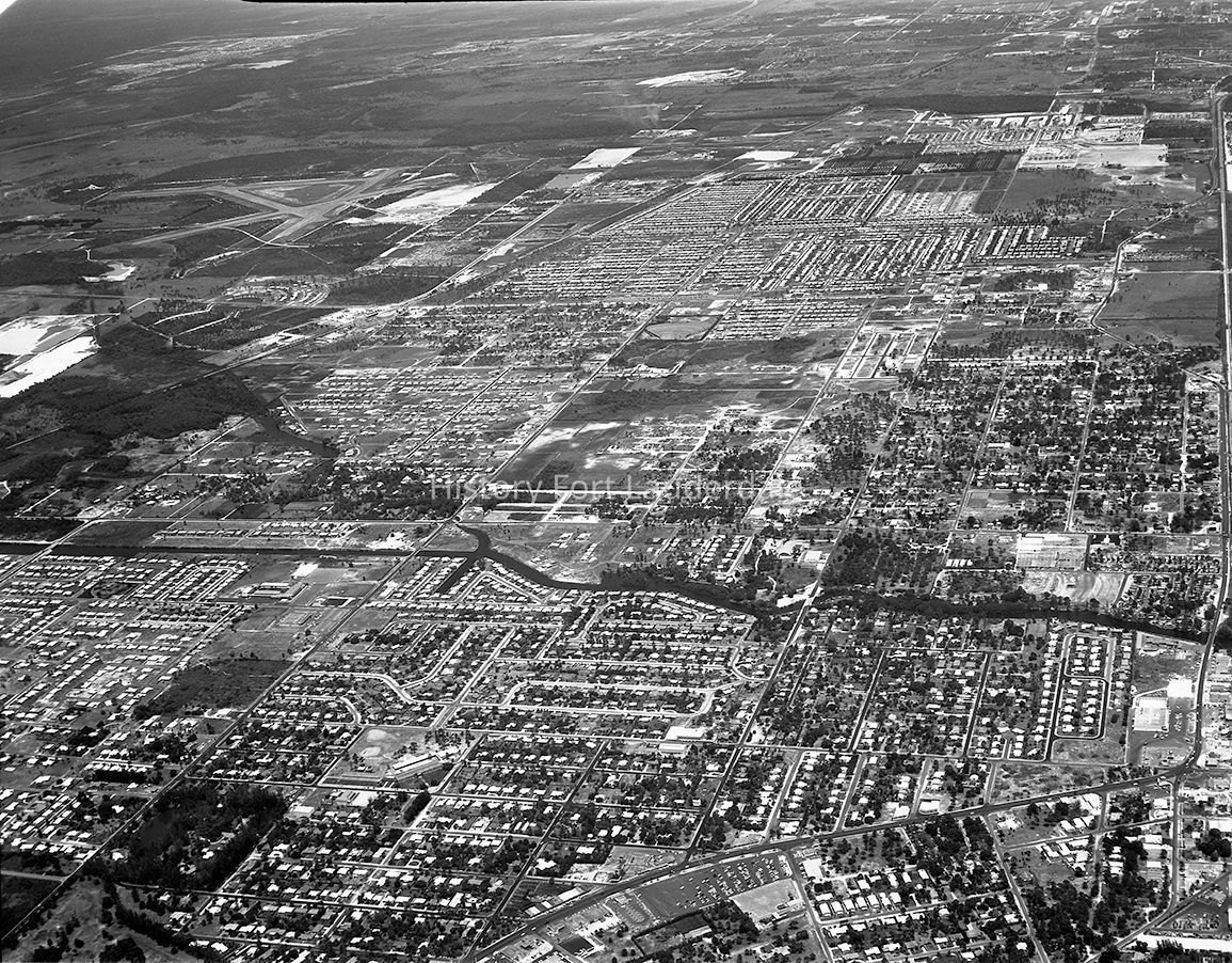The image shows Wilton Manors from 4000'. Oakland Park Boulevard runs east to west in the center of the image. Wilton Manors Drive is in the lower right quadrant of the image. Sleepy River Acres is located north of Oakland Park and west of Andrews Avenue in the upper left quadrant. Prospect Field (Fort Lauderdale Executive Airport is in the upper left quadrant of the image. The North Fork of the Middle River is centered, east to west, as is Oakland Park Boulevard. Andrews Avenue runs from the lower left corner of the image to the upper right quadrant. North Andrews Gardens is in the upper, center right quadrant of the image.Collection