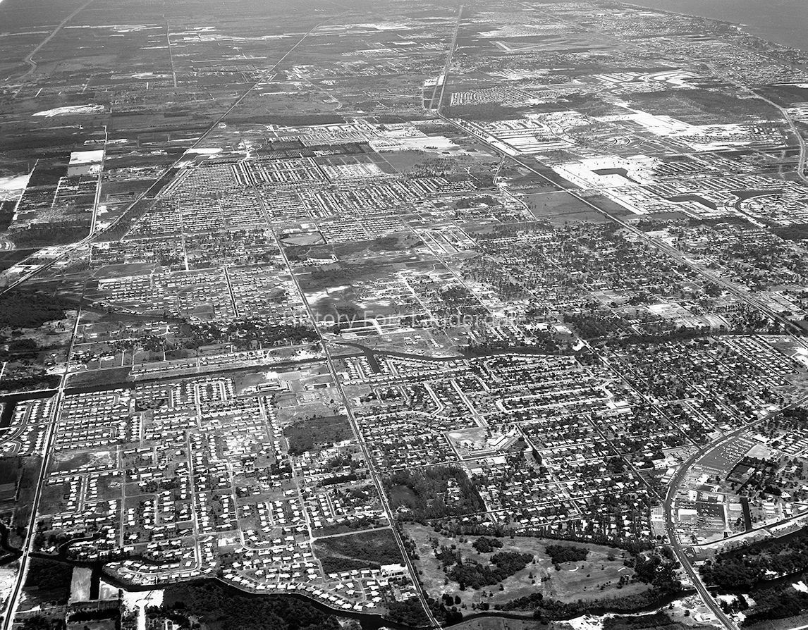 The image shows Wilton Manors from 4000'. Oakland Park Boulevard and the North Fork of the Middle River run east to west in the center of the image. Wilton Manors Drive is in the lower right quadrant of the image. Andrews Avenue runs north to south left of center in this image Sleepy River Acres is located north of Oakland Park and west of Andrews Avenue in the upper left quadrant. North Andrews Gardens is in the upper left quadrant of this image.Collection