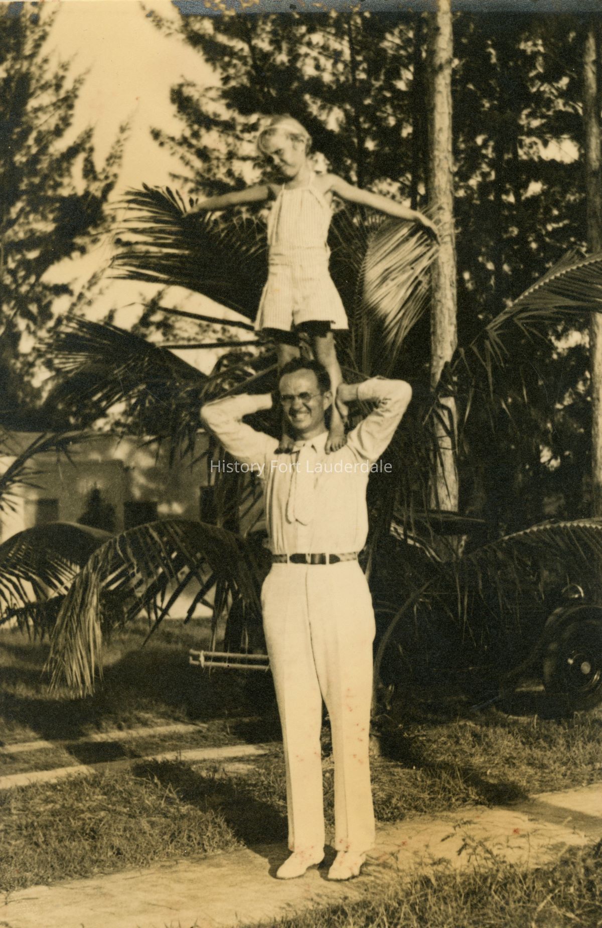 August Jr. with one of his daughters (Patricia?) standing on his shoulders.Collection