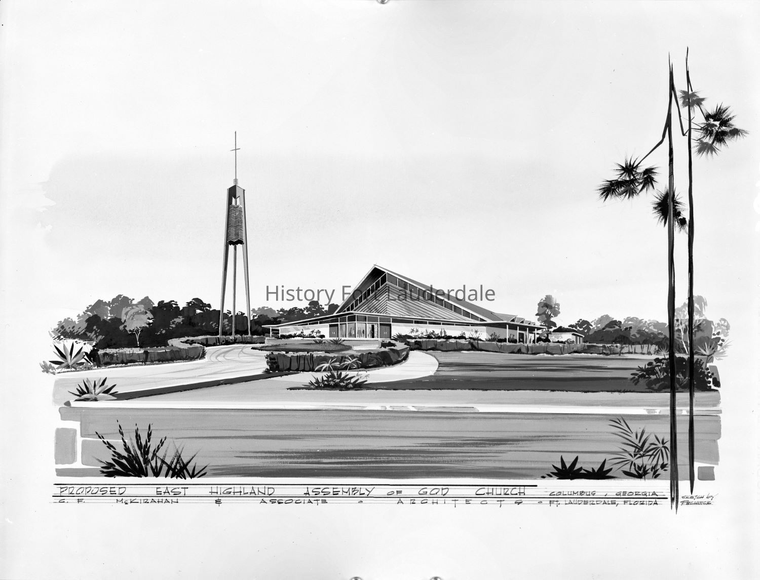 Proposed East Highland Assembly of God Church in Columbus, Georgia. Designed by architect Charles McKirahan.Collection