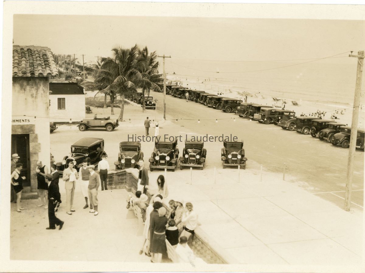 People in front of Fort Lauderdale (Las Olas) Casino Swimming Pool on the corner of A1A and SE 5th Street. Looking north on A1A.Collection