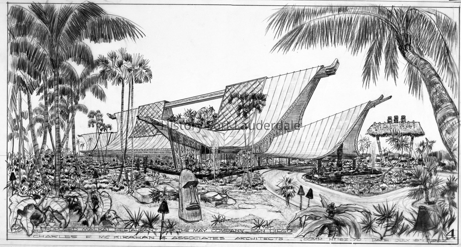 Proposed Mai Kai Restaurant for the May Company, San Diego, CA. Designed by architect Charles McKirahan.Collection