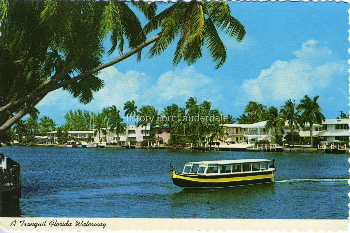 A tranquil Florida waterway. This scene is along Las Olas Boulevard in Ft. Lauderdale, FL. The city known as the "Venice of the America's". The city has more than 270 miles of waterways within the city limits. The broad streets and boulevards are lined with beautiful homes framed in exotic tropical flowers and trees.