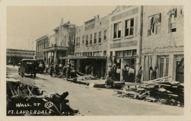 Wall Street looking west from Andrews Ave. showing the damage done by the Sept. 18, 1926 Hurrican. Ft. Lauderdale, Fl.
