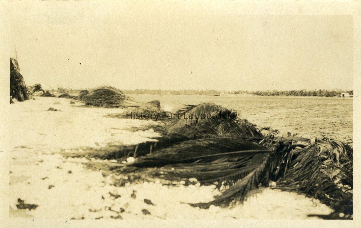 The shore line at Idlewyld showing the cocoanut trees down and the general look of desolation done by the Sept. 18, 1926 Hurricane