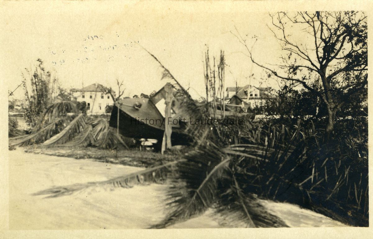 View of the destruction to a boat and palm trees by the Sept. 18,m 1926 Hurricane, Ft. Lauderdale Fl.Entry/Object ID