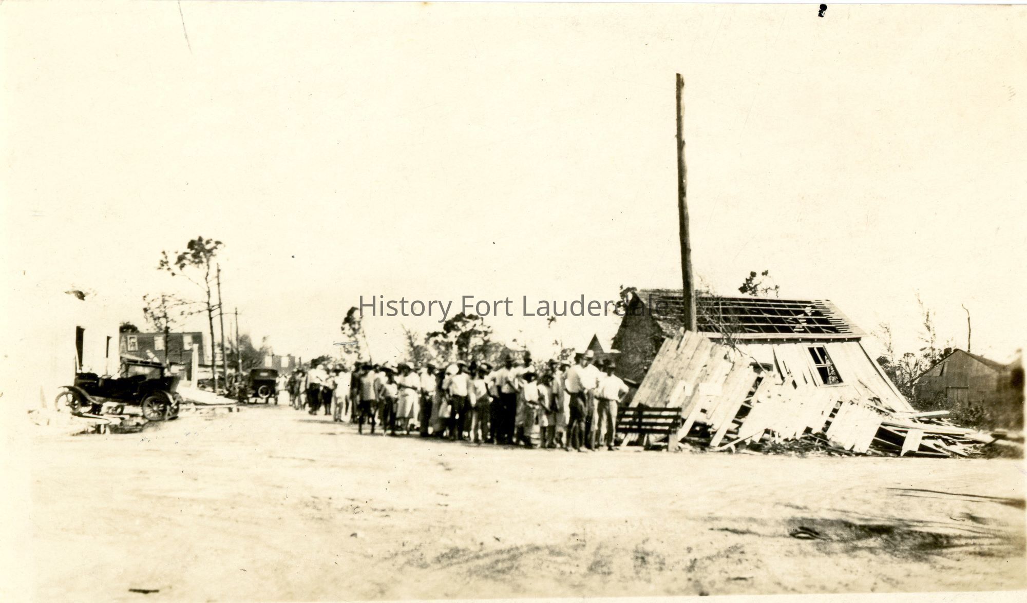 Group of people walking through the 1926 hurricane destruction of the Northwest section of Fort Lauderdale.