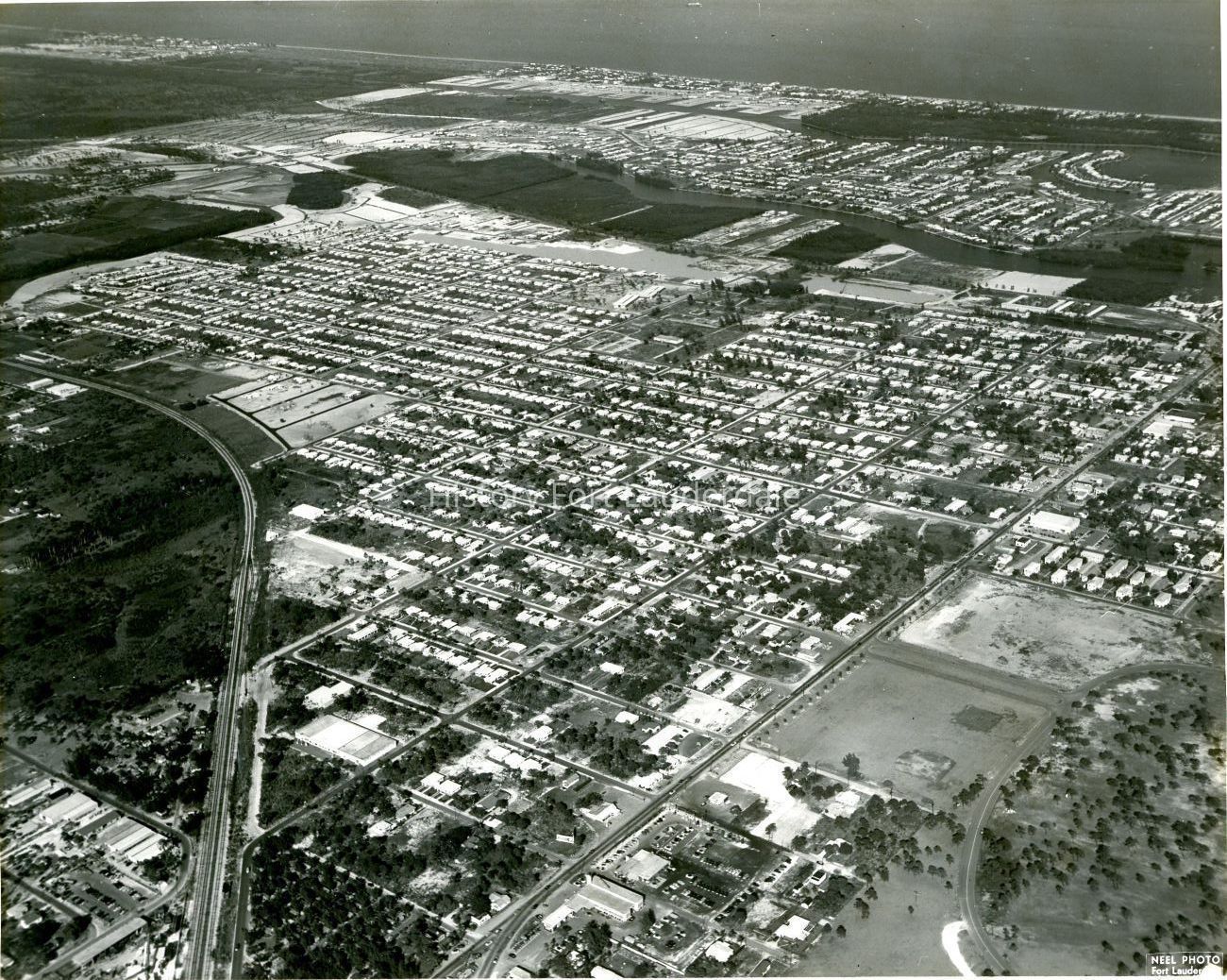 Aerial view looking northeast towards the ocean at the Coral Ridge housing development. Sunrise Boulevard runs from lower center to upper right.Collection